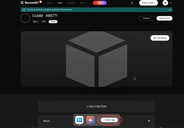2. Once you've created your BounceClub, enter your club and click "+Add An App" at the bottom of the page.