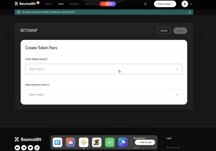 When adding Bitswap to their club, a BounceClub owner can choose which token pairs they wish to support for swapping. Users who interact with Bitswap within a BounceClub can swap any supported tokens and manage liquidity. Each transaction made in the liquidity pool incurs a 3% fee based on the token swap volume.&#x20;