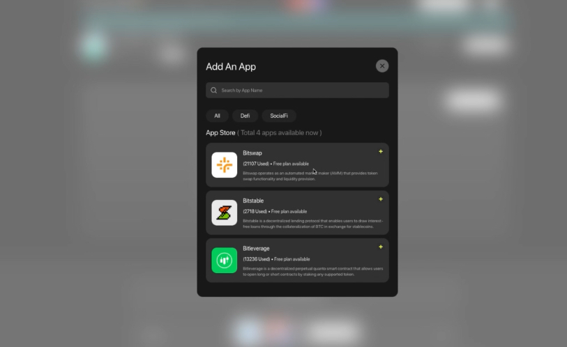 3. From the listed DApps, click on Bitswap.